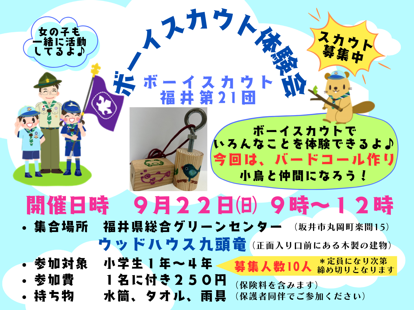 9/22(日)に秋の体験入隊「バードコール作り」を実施します。