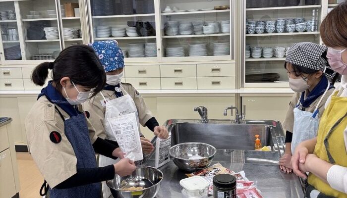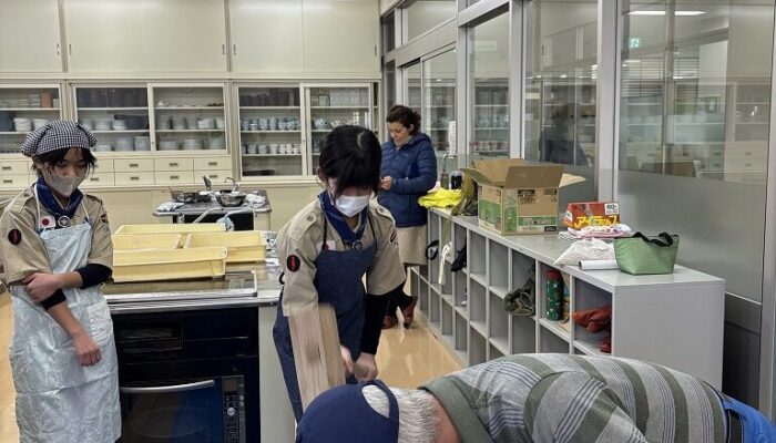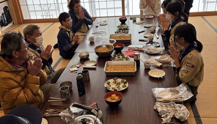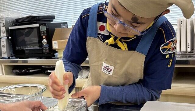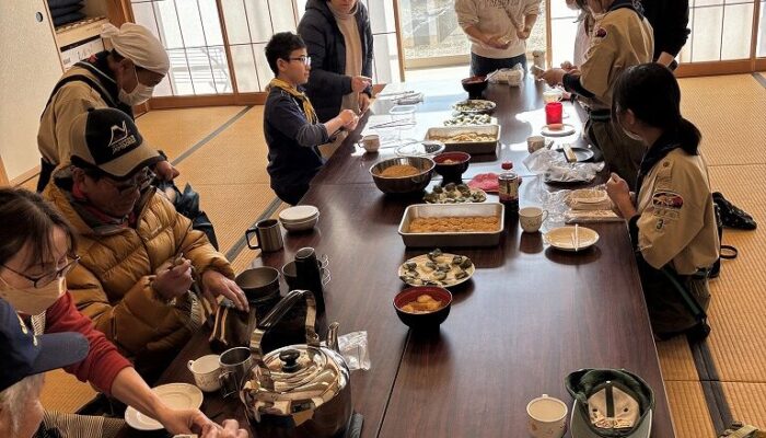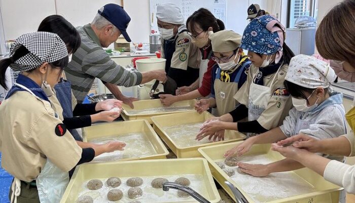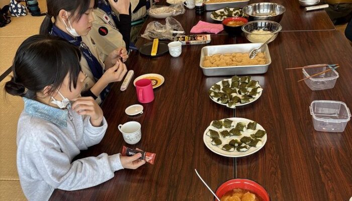スカウトは、大根をおろしたり、きなこに砂糖を入れて好みの味付けをしていました。